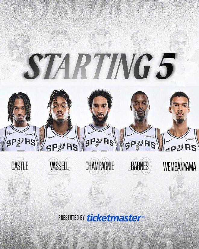 馬刺:尚帕尼、巴恩斯、文班亞馬、瓦塞爾、卡斯?fàn)?/p>