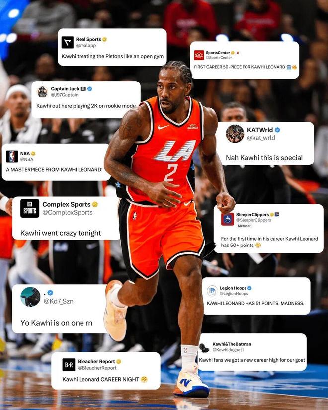 關(guān)鍵時(shí)刻奧薩爾和坎寧安的發(fā)揮幫助活塞繼續(xù)迫近分差,而倫納德穩(wěn)健的罰籃幫助快船鎖定勝局。