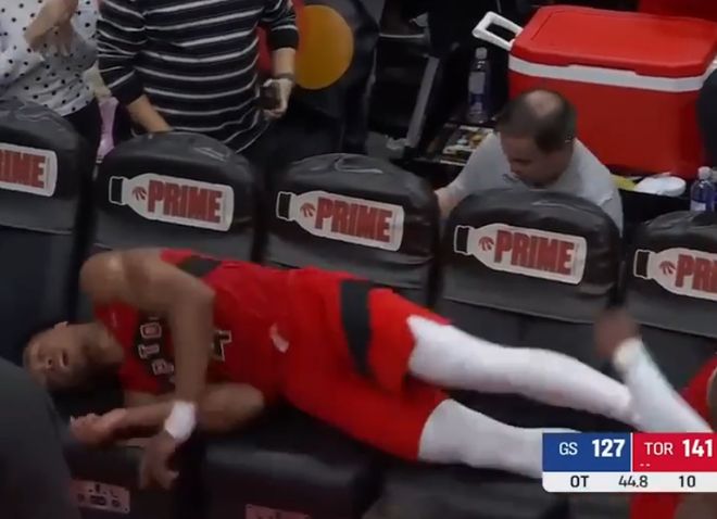但很快,他的體力就出現(xiàn)問(wèn)題,累癱在替補(bǔ)席。