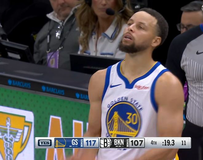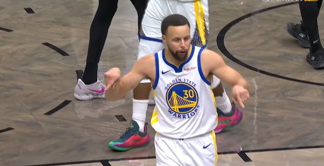 28分鐘27分!籃網(wǎng)主場(chǎng)為庫(kù)里狂喊MVP,他卻模仿老大哥詹姆斯慶祝