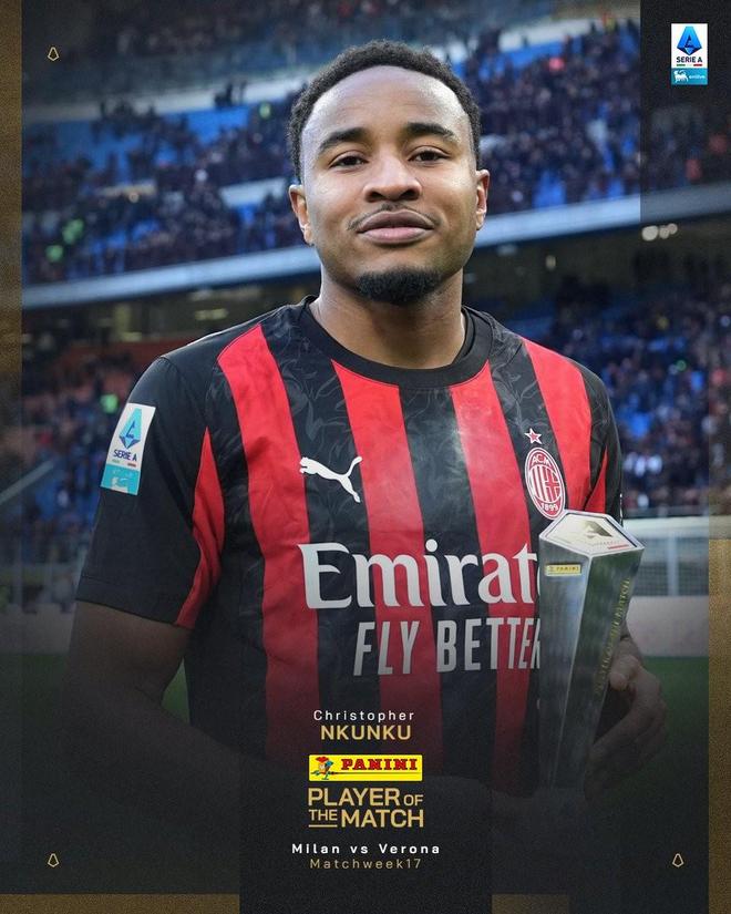 意甲第17輪,米蘭主場(chǎng)3-0大勝維羅納,此役上演梅開二度的恩昆庫當(dāng)選意甲官方全場(chǎng)最佳球員。