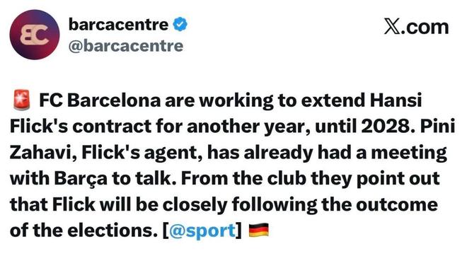 就在剛剛,根據(jù)西班牙媒體世界體育報帶來的確切消息。巴薩方面已經(jīng)正式作出決定,他們將在冬窗前官宣一則重要消息。這事關(guān)球隊未來幾個賽季的競爭力以及整體成績,沒錯,巴薩希望繼續(xù)與球隊主帥弗里克進行續(xù)約。兩邊已經(jīng)進行過多次接觸,談判進展非常順利。對于巴薩而言留下弗里克可謂是意義重大。