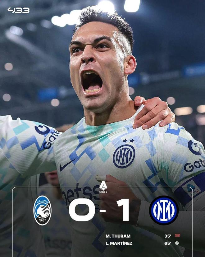最終國際米蘭客場1-0戰(zhàn)勝亞特蘭大,重登意甲積分榜榜首。