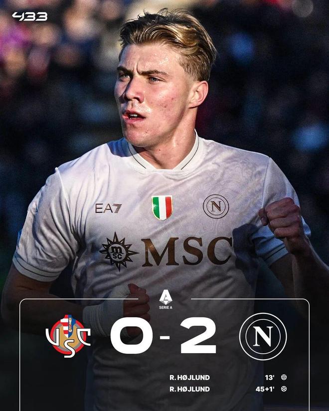 意甲第17輪,克雷莫內(nèi)塞主場對陣那不勒斯。此役,那不勒斯前鋒霍伊倫上演梅開二度,幫助球隊在客場全取3分。