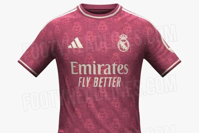 皇馬26/27賽季第三球衣諜照:粉色回歸,隊(duì)徽暗紋遍布全身