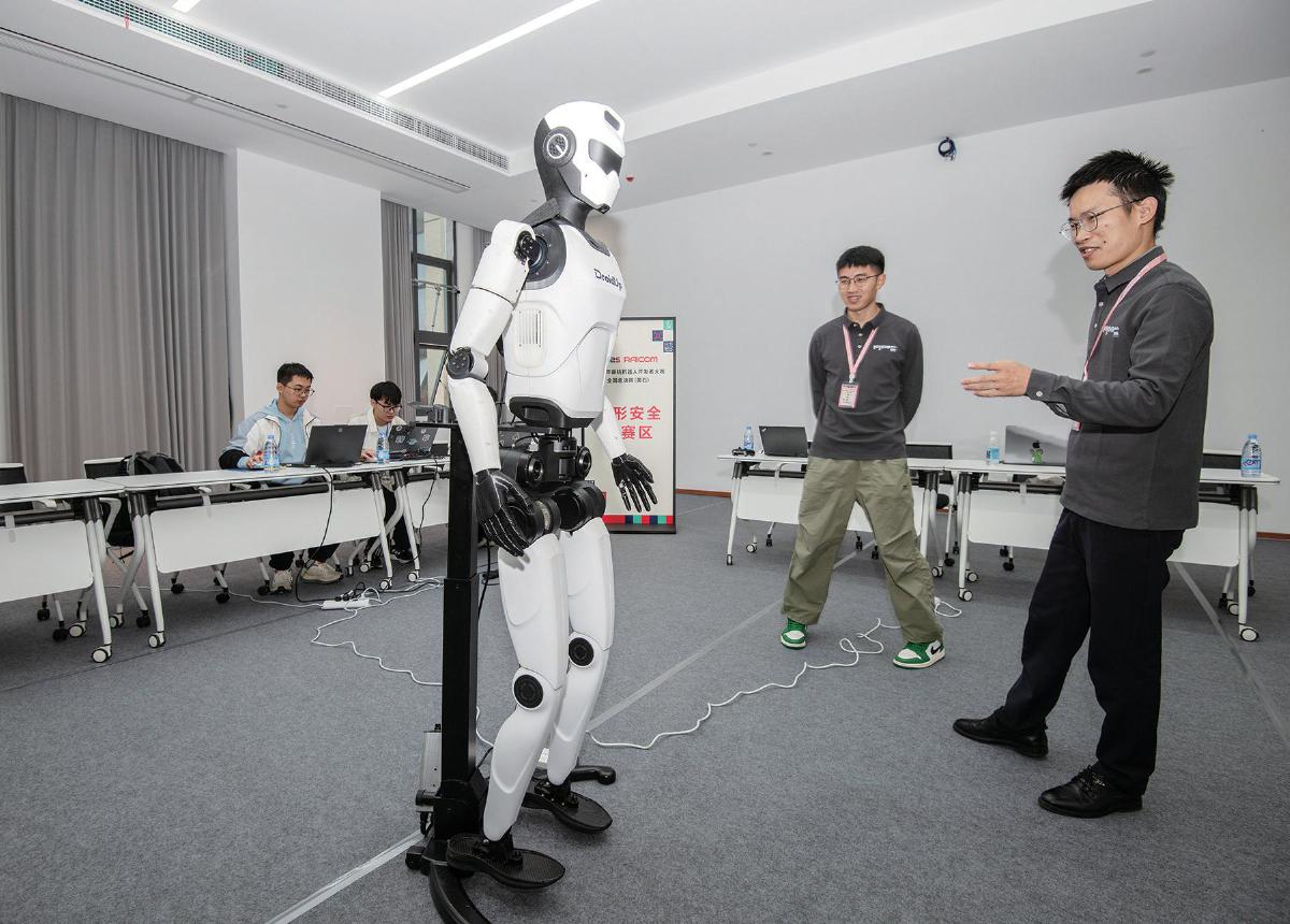 18日,在黃石市機(jī)器人產(chǎn)業(yè)創(chuàng)新發(fā)展交流會(huì)上,裁判官在評審設(shè)計(jì)完成的人形機(jī)器人。記者 石勇 攝